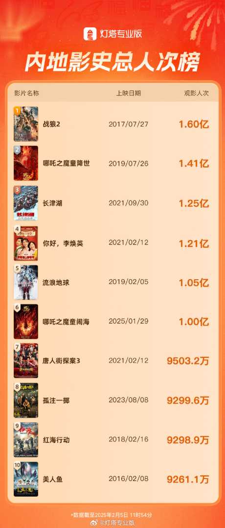 据灯塔专业版权威数据统计,截至2025年2月5日11时54分,备受瞩目的国产动画电影《哪吒之魔童闹海》观影人次成功突破1亿大关,再次彰显了国产动画电影市场的蓬勃活力与巨大潜力。