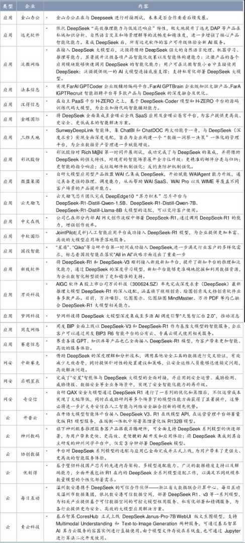 国金证券在研报中也表示,DeepSeek的低成本、高性能特点有望带动AI应用和端侧硬件的加速落地,建议关注端侧智能硬件、软件应用、网络安全、信创等领域的投资机会。