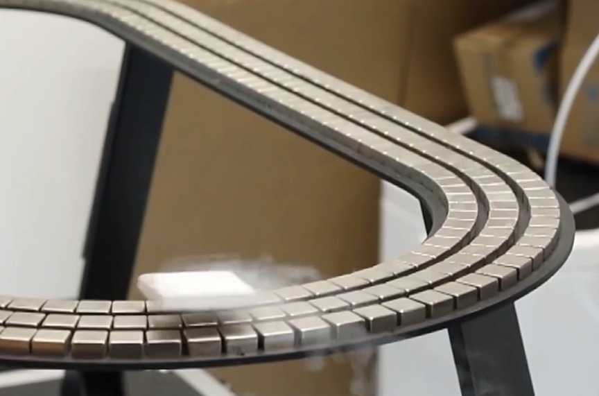 图中为悬浮在轨道上的高温超导材料,央视新闻视频截图。