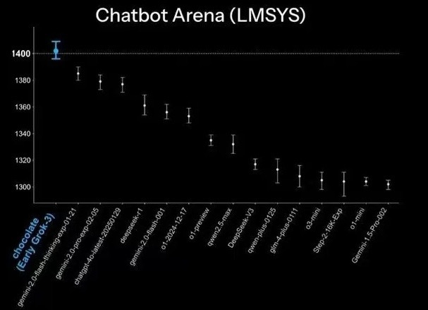 2月18日,马斯克在X平台直播发布Grok 3模型,并现场演示。其PPT显示,基准测试结果表明Grok 3在多项测试中击败了谷歌Gemini 2 Pro、Deepseek V3等竞争对手。在大模型竞技场Chatbot Arena LLM排行榜上,Grok 3早期版本突破1400分,成为史上首个达到此分数的模型。