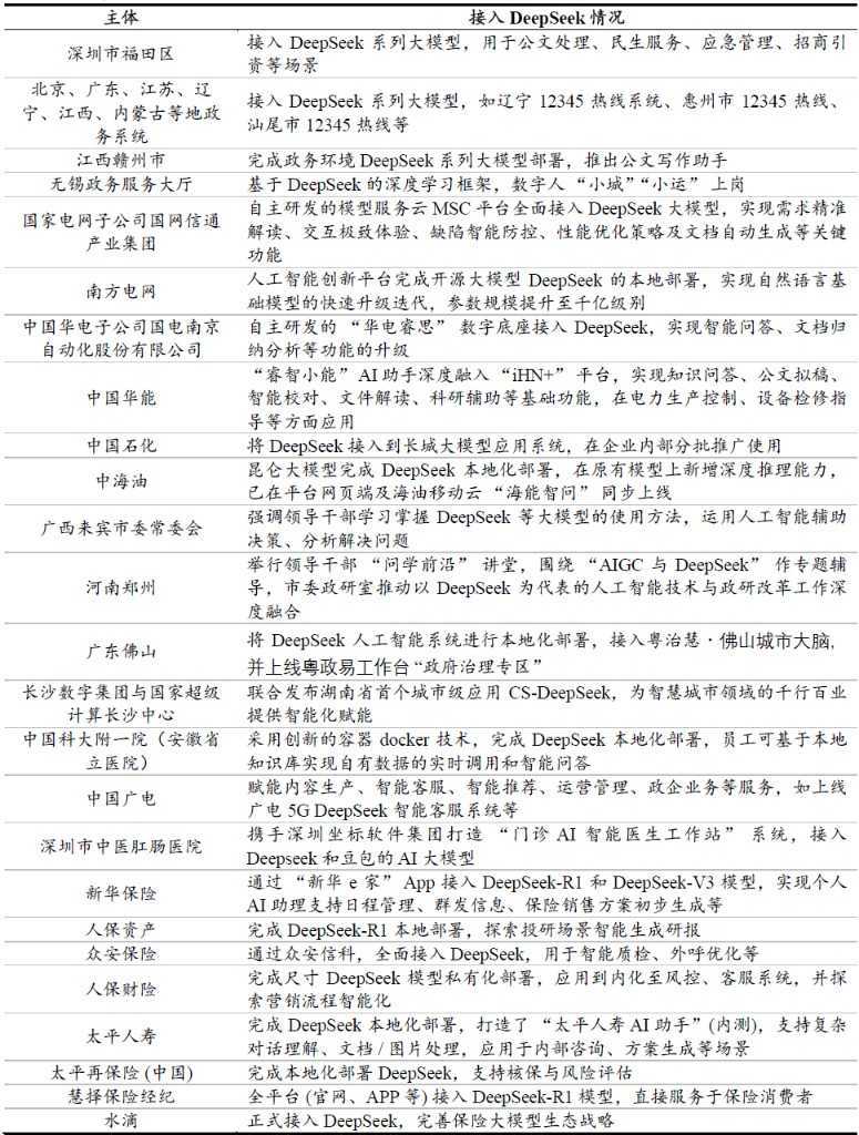 一体机密集发布的背后,是党政机关和关键行业客户对DeepSeek需求的井喷。多地政务系统宣布全面启用DeepSeek大模型,AI“公务员”正式上岗。同时,超20家央企已接入DeepSeek,覆盖多个领域。