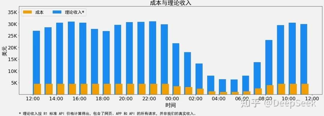 DeepSeek官方账号在知乎首次发布推理系统概览,公开核心优化方案及财务数据,理论上一天总收入可达$562,027,成本利润率高达545%。所有服务均采用H800 GPU,通过动态调整节点资源实现效率最大化。