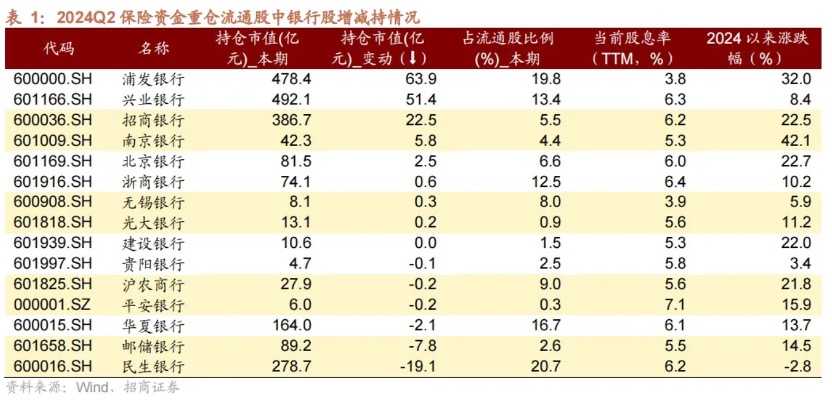 市场热议,银行股的上涨是否由险资推动?此前,市场普遍认为险资是买入银行股的主力,因其偏爱高股息板块,且为今年较为明显的增量资金。然而,随着中报披露,国有大行的前十大流通股中,险资并未明显加仓,因此有观点指出,险资带动银行股上涨的逻辑并不充分。