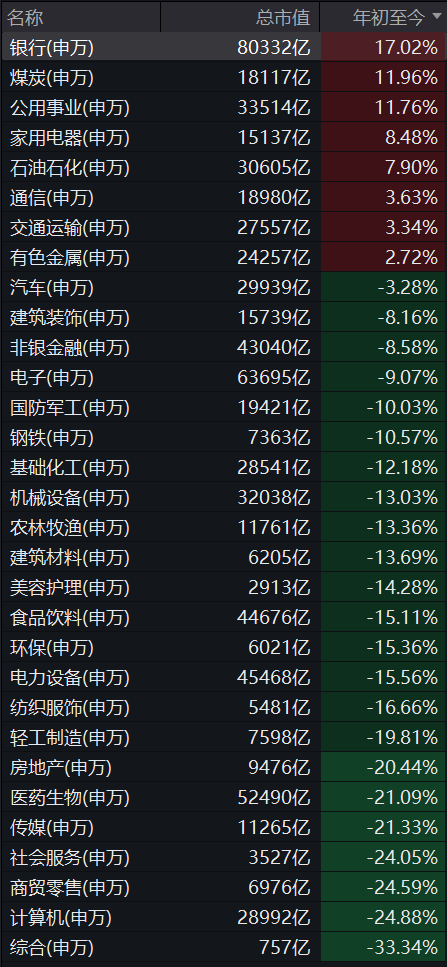 除银行外,今年上半年,煤炭、公用事业、家用电器等行业同样涨幅居前。而综合、计算机、商贸零售行业则跌幅居前。展望后市,多家机构仍看好高股息资产的投资价值。