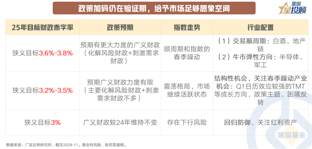 从过往历史看,财政政策发力下,广义赤字率上行,PPI上行,A股ROE显著提升,推动指数和经济周期类资产上涨。近期,10月经济数据发布,政策效果显现,供需格局改善。尽管外需面临不确定性,但增量政策稳步落地效果逐渐显现,内需应能接力外需促进经济行稳致远。基本面环境的改善是检验后期市场向好的关键。