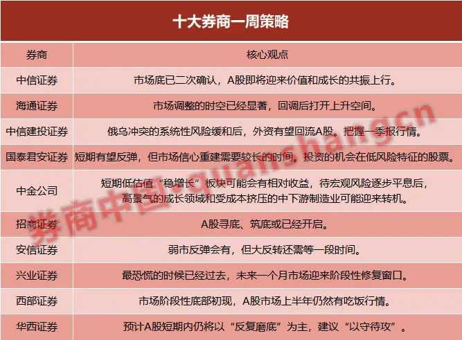 (文章来源:券商中国)(原标题:【十大券商一周策略】最恐慌的时候已经过去!A股上半年仍有吃饭行情,投资机会在低风险特征的股票)(责任编辑:27)