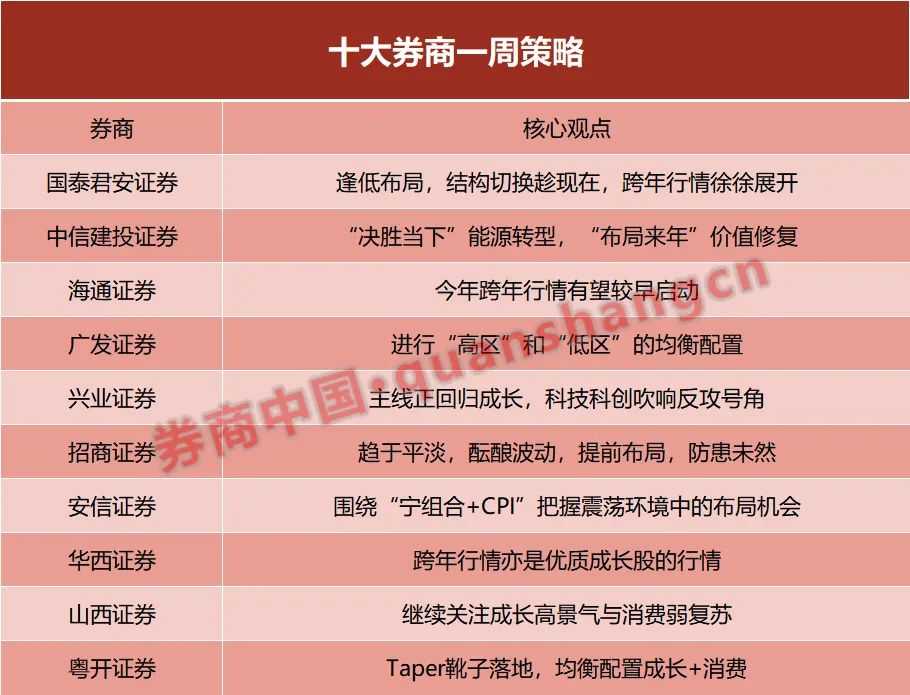 安信证券认为,随着Taper节奏明朗,配置重点更聚集于分子端表现。建议围绕“宁组合+CPI”把握布局机会,重点关注高景气长赛道、CPI涨价链及元宇宙等产业新方向。