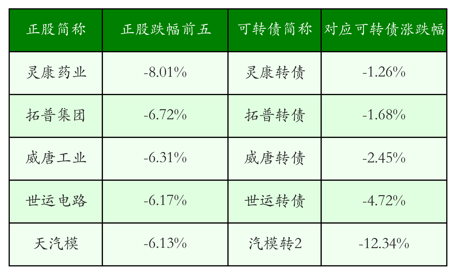 另外,今日有11只可转债对应的正股跌幅超过5%,但并未出现跌停的情况。