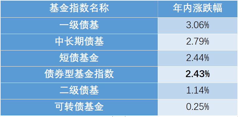 由此可见,股票类资产占比越高,基金受股票市场的影响就越大,波动率也会相应增加。这也与上文提到的“各类债券基金今年以来涨跌幅”表格相吻合。在今年股市表现不佳的情况下,不投资股票的一级债基和纯债基金表现更佳,而二级债基和可转债基金则相对较弱。