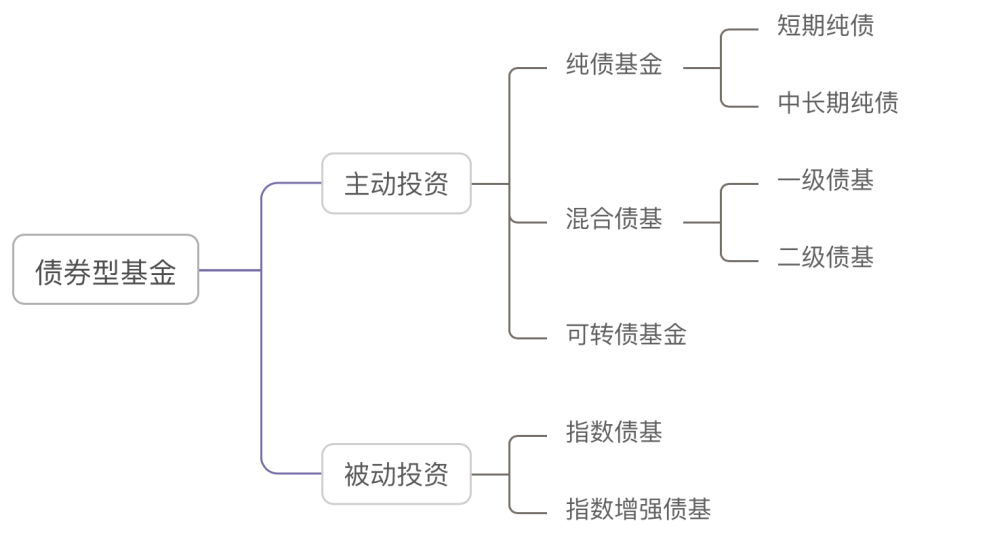 在主动投资的债基中,不投资股票的纯债基金(包括短期纯债和中长期纯债)的风险等级相对较低,波动也较小;一级债基可以投资少量可转债,因此风险和收益预期略高于纯债基金;二级债基则有小部分仓位(不超过20%)可以投资股票,风险收益预期更高。
