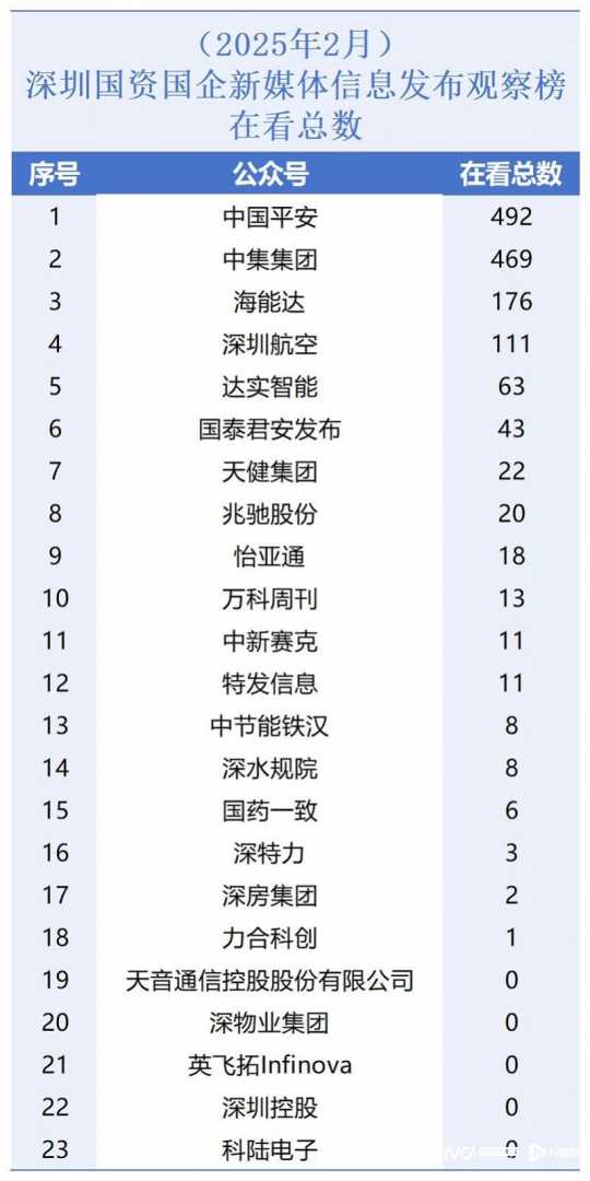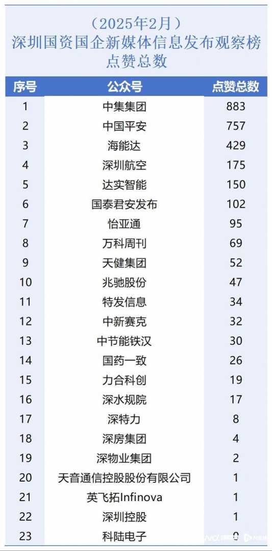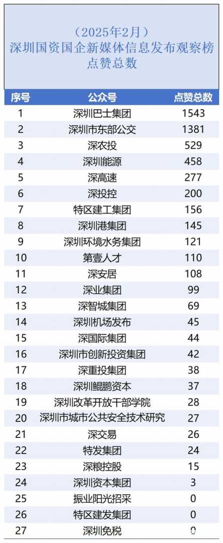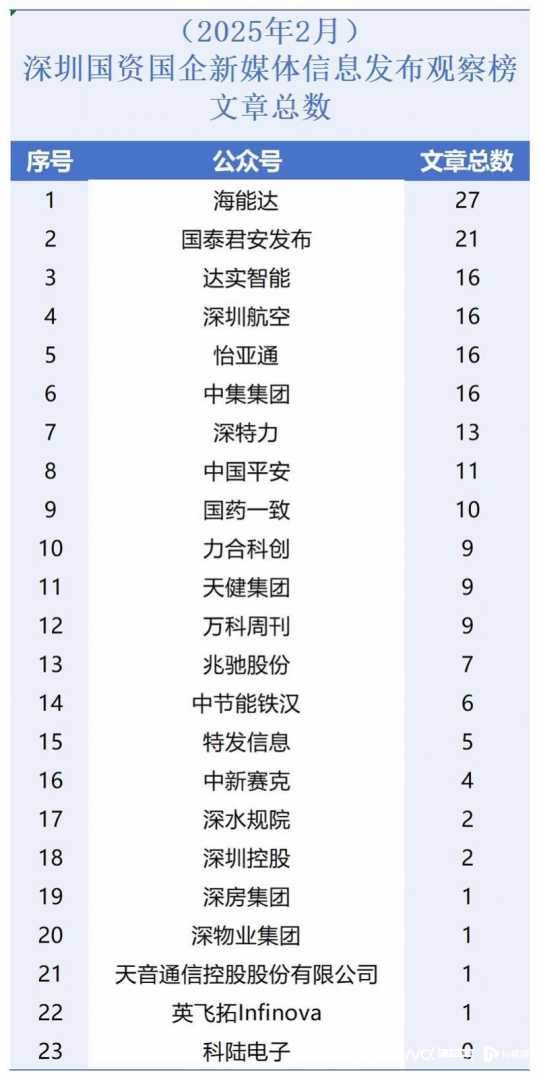 2025年2月深圳国资国企新媒体信息发布观察榜发布