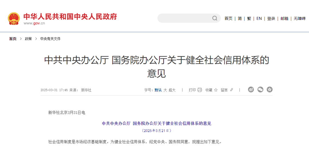 《关于健全社会信用体系的意见》全面展开,构建全方位信用体系
