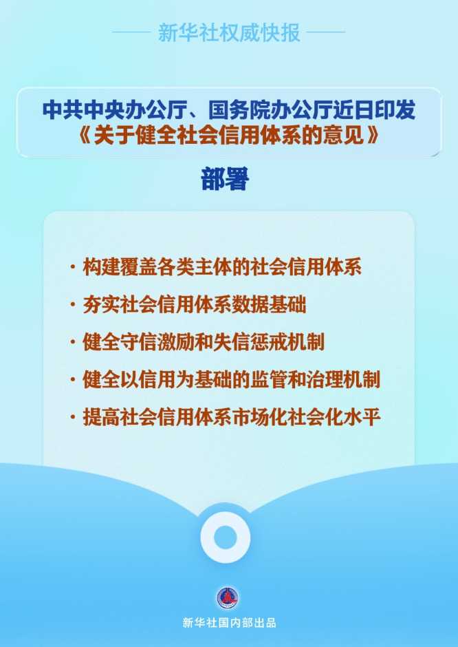 受权发布丨中共中央办公厅国务院办公厅关于健全社会信用体系的意见