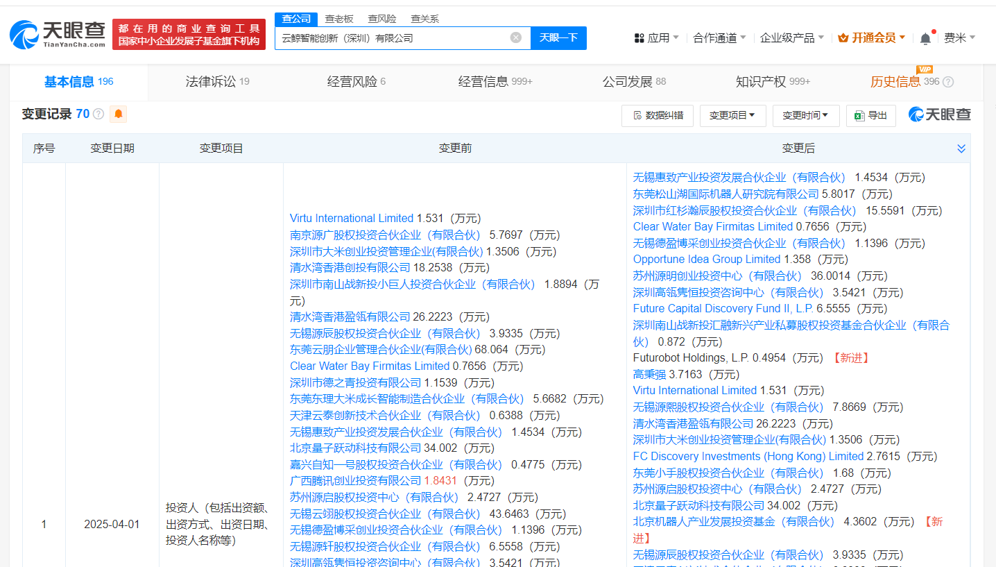 云鲸智能创新(深圳)有限公司近日发生工商变更,新增多家股东,注册资本增至约351万人民币。该公司成立于2016年,致力于家用机器人领域的创新与发展,此次变动显示了资本对该领域的持续看好。