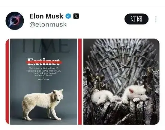 值得一提的是,知名企业家马斯克也在其社交媒体上转发了关于此事的报道,表达了对这一科技突破的关注。据悉,Colossal Biosciences的第二大股东是马斯克旗下脑机接口公司的离岸基金,其生物复活项目还获得了特斯拉超级计算机的算力支持。