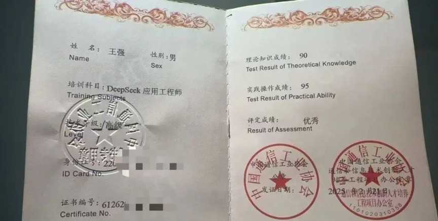 协会相关负责人表示,他们确实组织了DeepSeek培训活动,但证书仅证明参加过培训,不代表其他。