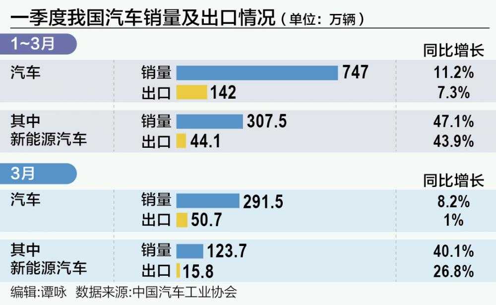 一季度,我国汽车产销分别完成756.1万辆和747万辆,同比分别增长14.5%和11.2%。其中,新能源汽车销量为307.5万辆,同比增长47.1%,成为拉动汽车市场增长的重要引擎。