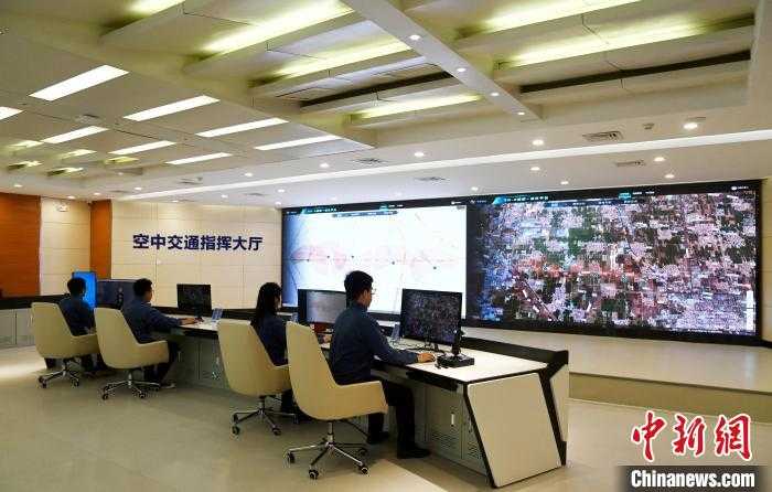 11月29日,石家庄装备制造产业园内的空中交通指挥大厅正在紧张运行,为即将到来的无人机试飞任务提供指挥保障。张震摄