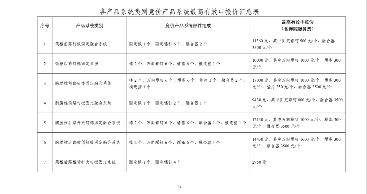 延续此前惯例,脊柱集采为所有的14个产品系统类别分别设定了最高有效申报价,即限价。