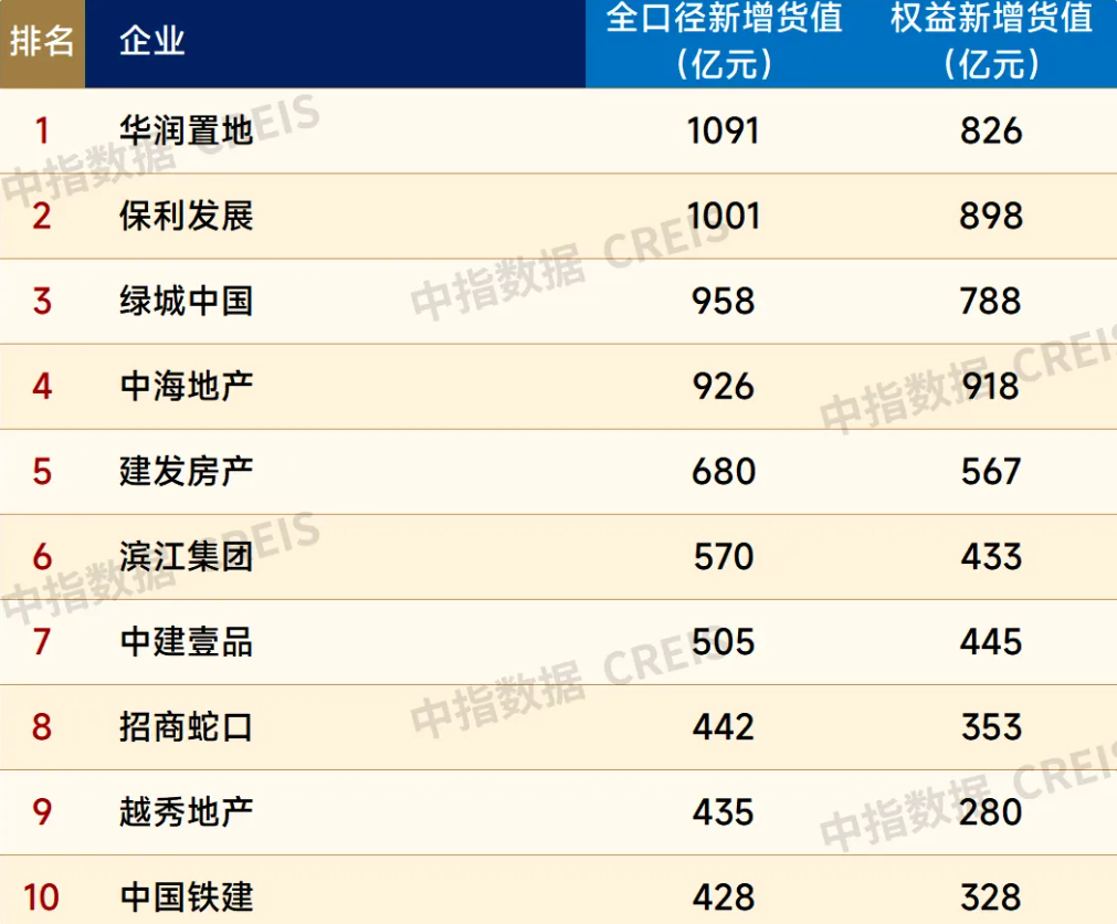 从新增货值来看,华润置地、保利发展和绿城中国分别以1091亿元、1001亿元和958亿元位居前三位。TOP10房企前11个月的新增货值总额达到7037亿元,占TOP100房企的32%。