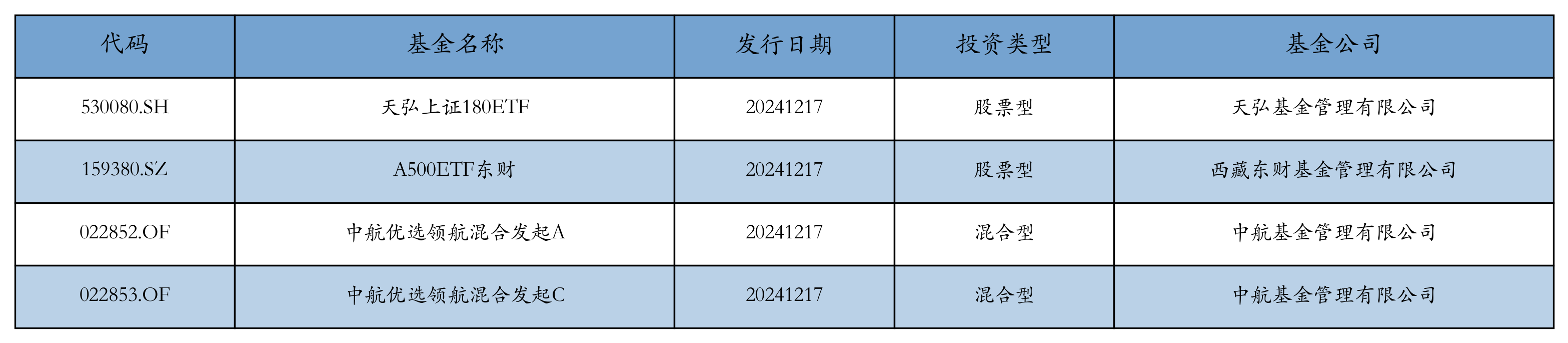在基金市场,昨日共有4只新基金正式发行,分别是天弘上证180ETF、A500ETF东财、中航优选领航混合发起A和中航优选领航混合发起C。关于这四只新基金的详细信息,请参见下表: