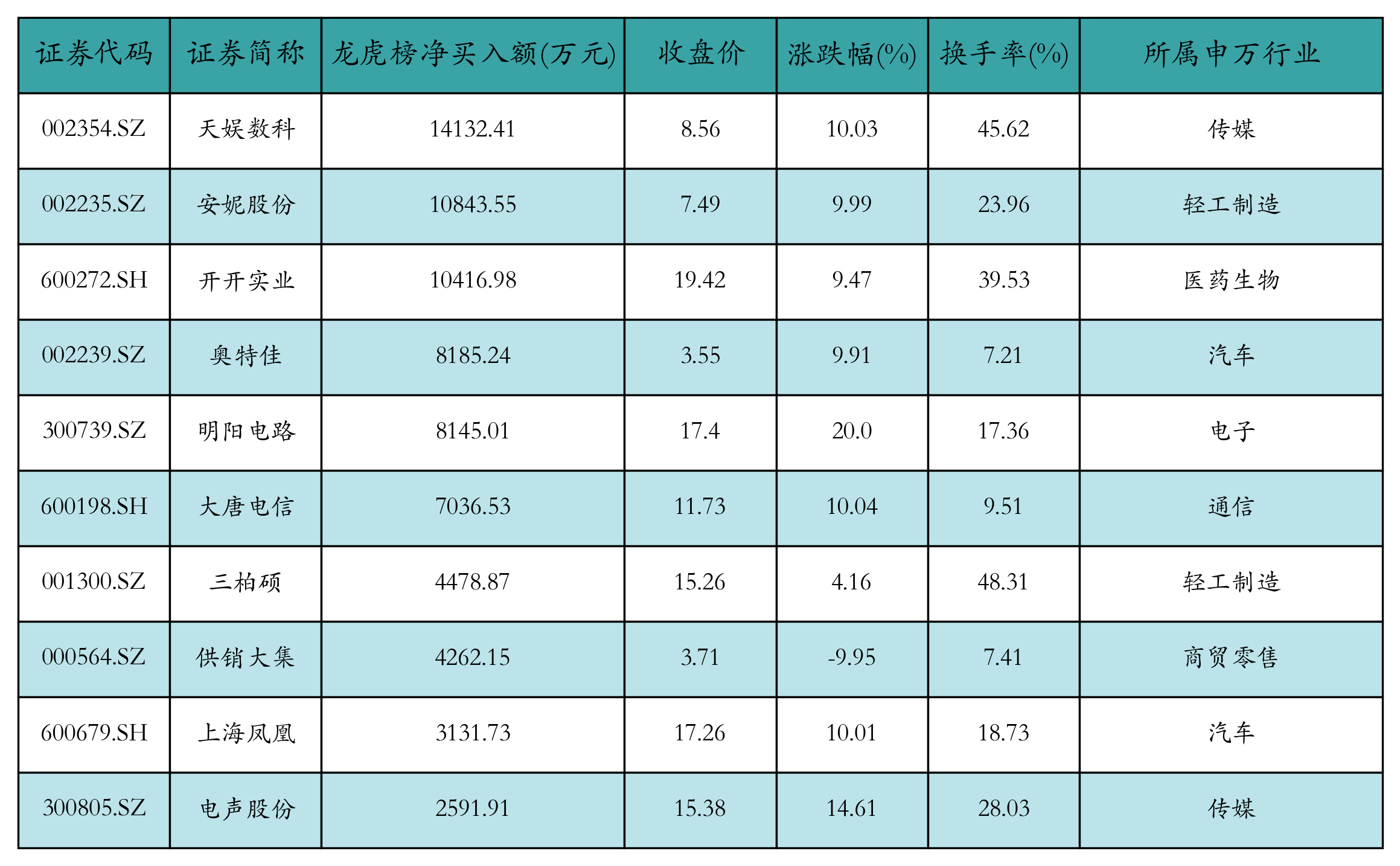 最后,从龙虎榜的数据来看,昨日龙虎榜营业部净买入额前10的详细情况,请参见下表: