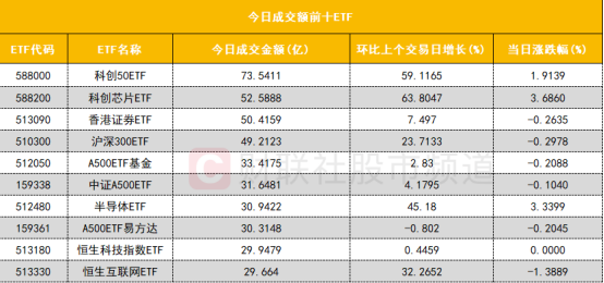 科创50ETF(588000)成交额位居首位,沪深300ETF(159919)成交额环比大增171%,半导体ETF(159813)成交额环比增长97%,市场关注度提升。