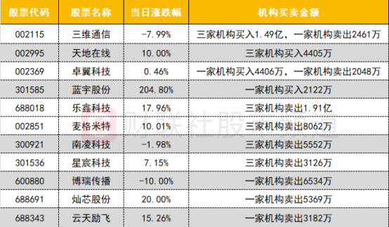 机构活跃度有所下降,但三维通信、天地在线等个股仍获机构大笔买入。同时,乐鑫科技、麦格米特等芯片股则遭机构抛售。