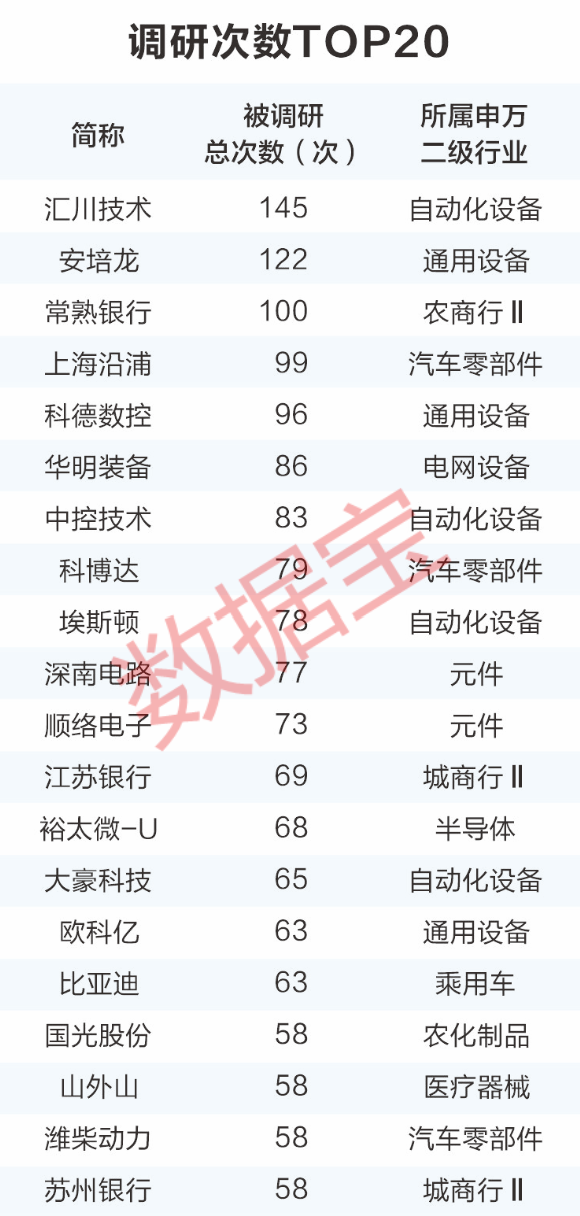 从机构调研的次数来看,今年有28家上市公司获得50次以上机构调研,其中汇川技术、安培龙、常熟银行位列三甲,调研次数分别为145次、122次和100次。这些公司不仅调研次数多,而且市场表现也较好,显示出机构调研对投资决策的积极影响。