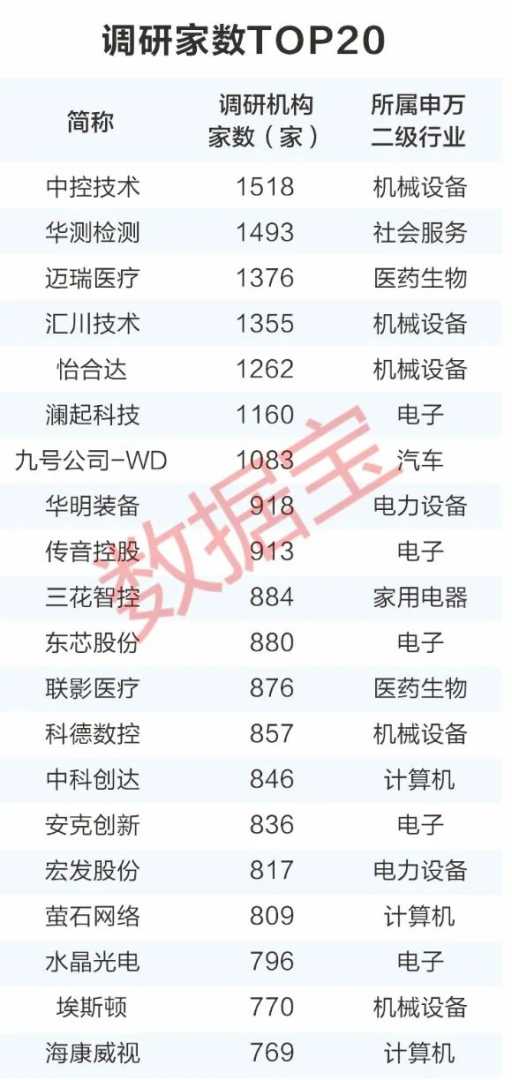 值得一提的是,今年有7家公司累计获得1000家以上机构调研,分别是中控技术、华测检测、迈瑞医疗、汇川技术、怡合达、澜起科技和九号公司-WD。这些公司不仅市场热度高,而且自身实力不俗,值得投资者重点关注。