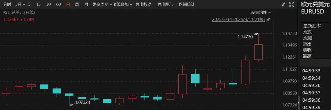 美国政府关税政策的反复无常导致全球贸易陷入混乱,欧元对美元汇率波动加剧。11日,欧元对美元汇率攀升至1欧元兑换1.1473美元,创下2022年2月以来的新高。
