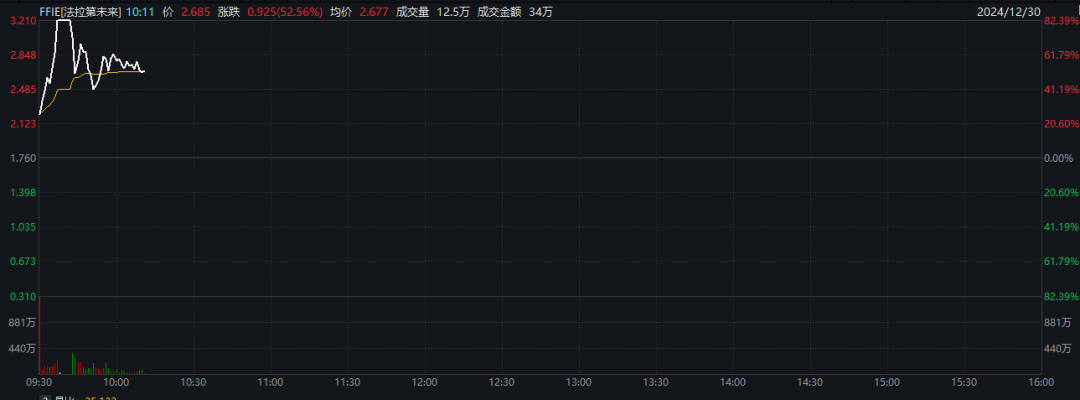 然而,也有个别股票表现抢眼,法拉第未来股价一度大涨超80%,并触发熔断。消息面上,法拉第未来宣布完成约3000万美元的现金融资,用于推动公司及其FX战略的发展。