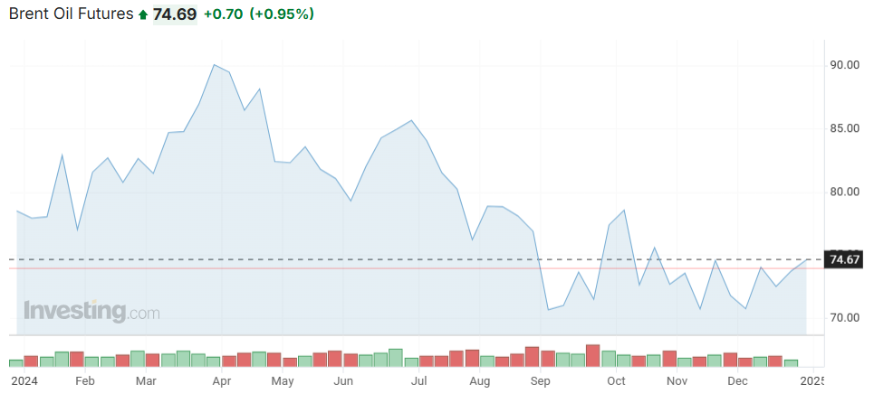 Kaneva及其团队预计,国际基准布伦特原油价格在2025年将平均跌至每桶73美元,相比之下,2024年的平均价格约为80美元。